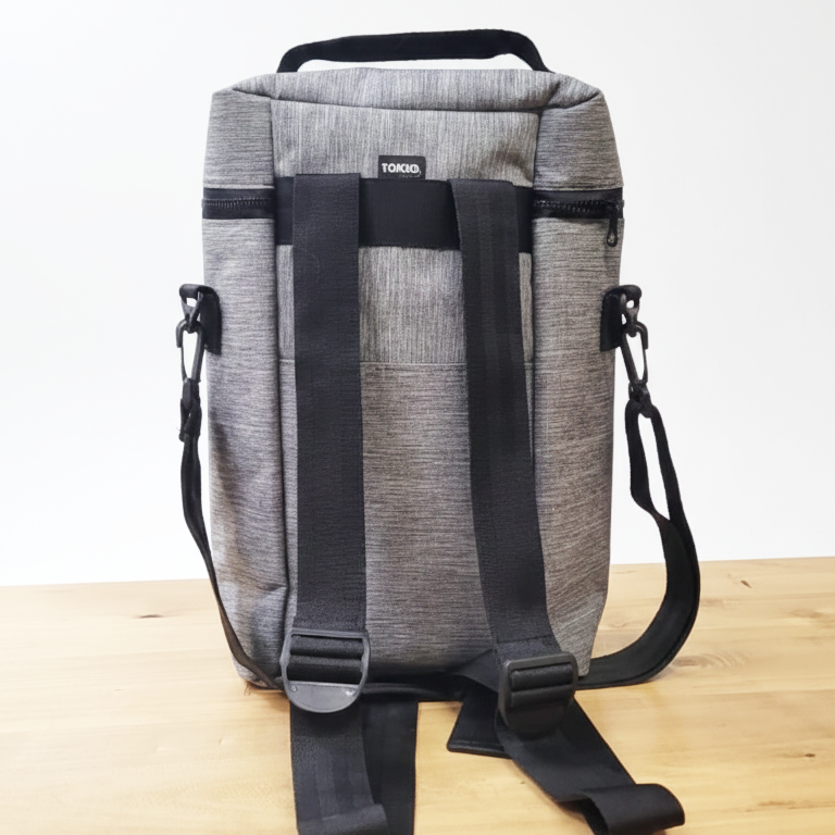 Bolso/Mochila matera con divisiones, súper amplia y cómoda. Posee 2 bolsillos y correas regulables.