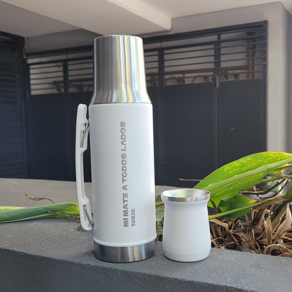 Combo termo + mate térmico en acero inoxidable con grabado. El mate NO incluye la bombilla.
