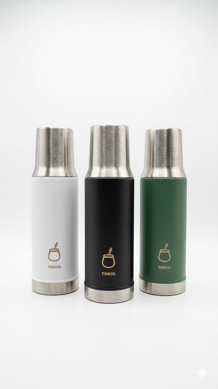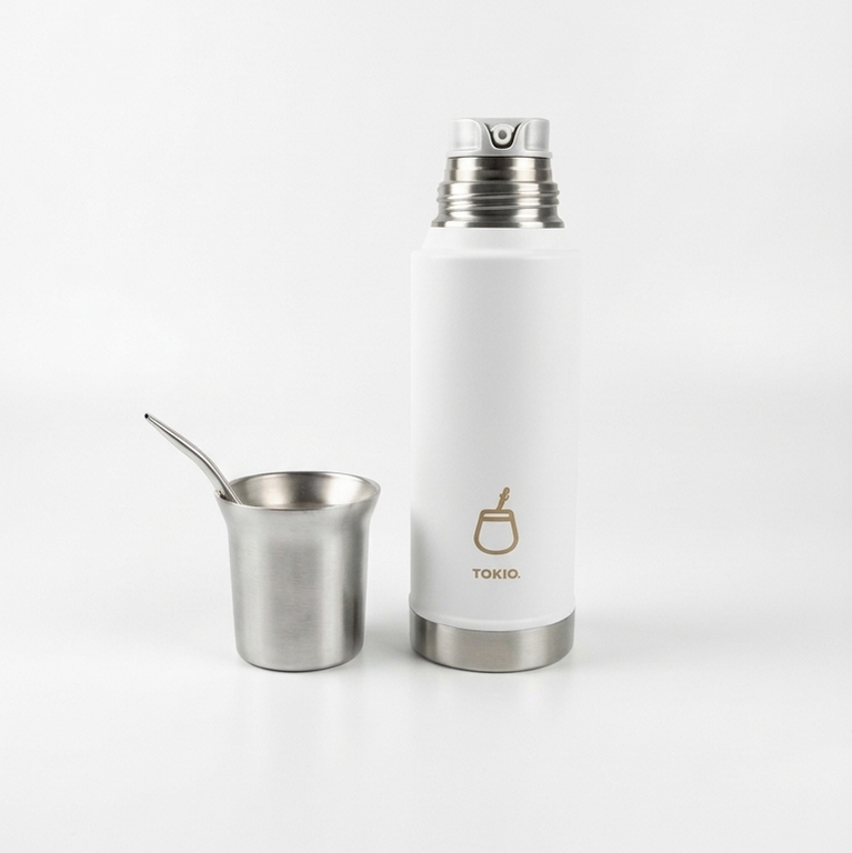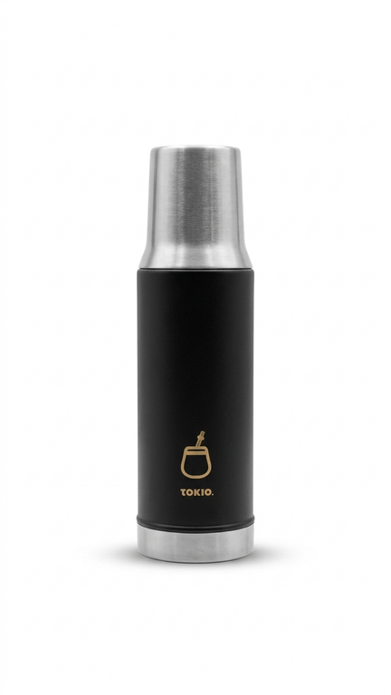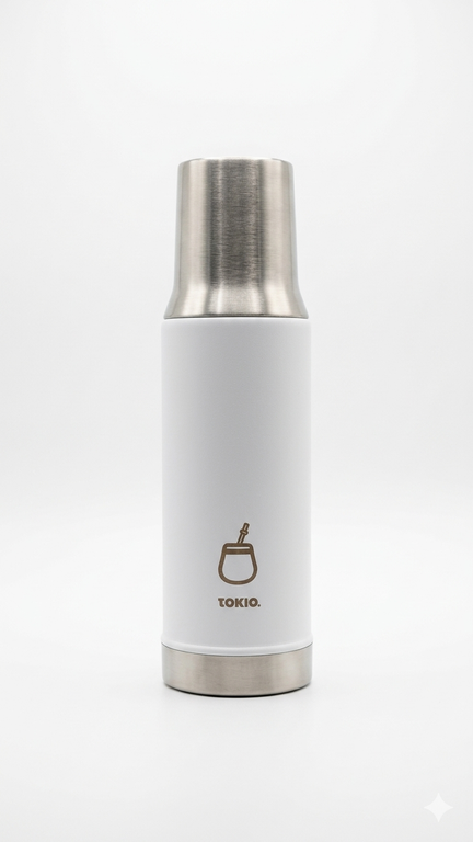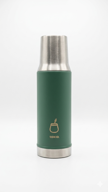 Termo de Acero Inoxidable, con pico cebador, cómodo y ligero para transportar. Su tapa se puede usar como mate, Apto para frio y calor, sin manija.